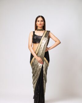 Product Description: Dark Cyan Satin Silk Saree With Silver Gota Work And Dark Cyan Satin Silk Blouse .