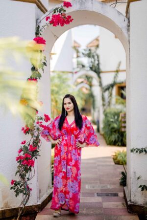 Red Floral cape with red floral georgette tier skirt & golden sequence blouse